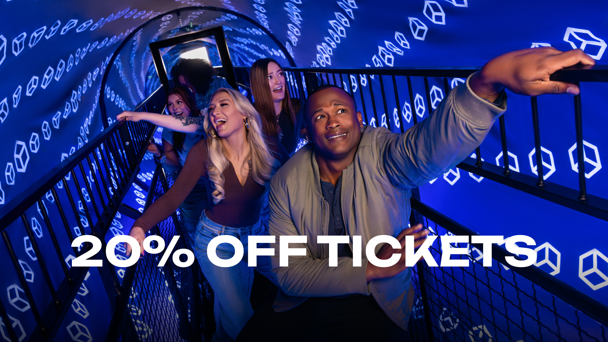Discover over 80 interactive exhibits and unreal photo ops that will challenge your senses and twist your perception. Defy gravity, grow or shrink in seconds, walk through a spinning vortex, swap faces with a friend – and see reality in a whole new way!